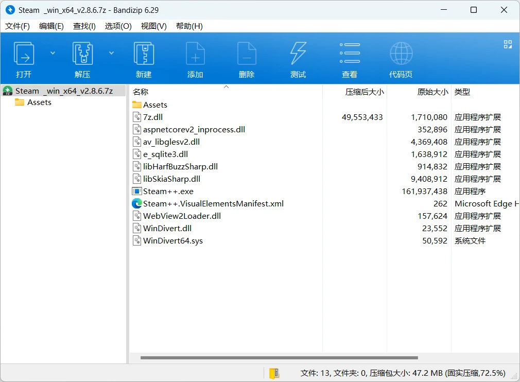 Windows版本,下载完成以后为压缩包“Steam _win_x64_v2.8.6.7z”【版本:v2.8.6,类型:7z】