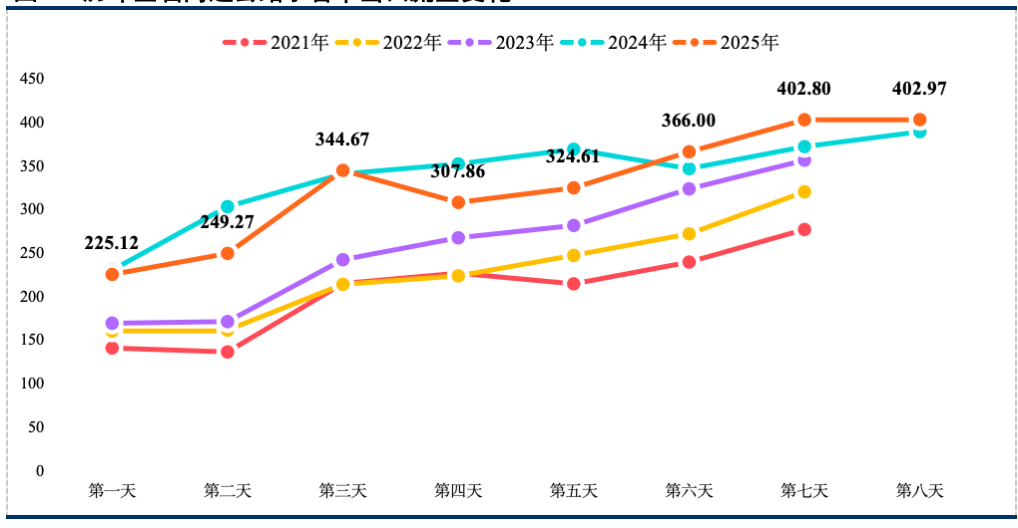 根据2025年清明、五一、中秋国庆等节假日公众出行情况,结合节日期间天气、管制政策等,2026年春节期间,公众出行旅游、走亲访友等需求将会较大程度释放。预计全省高速公路在去年高位运行的基础上将继续攀升并持续高位运行,日均出口流量约为342万~359万辆,同比增长约4.5%,较平日增长约44%、较五一低约26%、较国庆低约24%,日均流量再创春节新高。其中,最高日预计为假期最后一日(2月23日),出口流量将达到419万~440万辆。