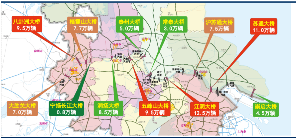 全省各个高速公路过江通道流量情况