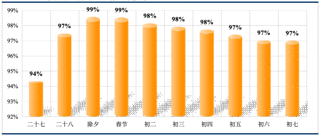 根据历年春节高速公路大数据及相关影响因素分析,结合假日期间天气、施工管制等影响因素,预计今年春节车流量预测及主要特征如下: