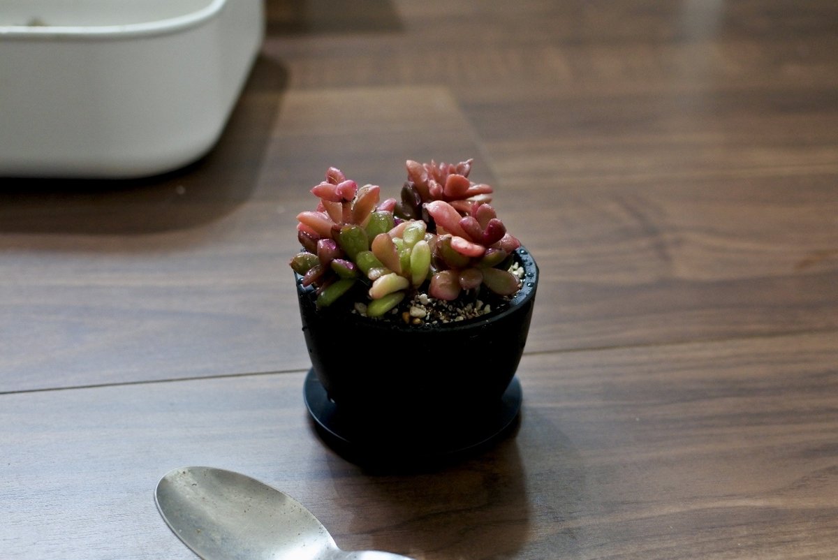 水はけの良い土わたしのように、大きすぎる鉢に植えている場合、まずは株の大きさに合った鉢へ植え替えることをおすすめします。そうすると土の量が減り、乾きやすくなります。