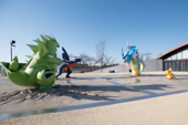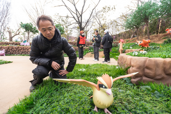 To further emphasize the immersion of Pokémon into real life, extensive thought was given to not just the Pokémon’s individual poses, but how they were positioned in relation to each other and the world in which they exist. Mr. Masuda asked, “How would people seeing the different poses perceive the relationship between these Pokémon?” He proceeded to give some examples of his thought process. “If there’s a bigger Pokémon next to a smaller Pokémon, would visitors see that as a parent/child relationship? Or if there were two Pokémon looking in the same direction, would it appear that they were going somewhere together? If they were facing each other, would it seem like they were having a conversation?” Every detail was important when planning how the Pokémon would live in PokéPark KANTO.