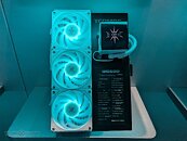 The TCOMAS WG900 PRO is a different take on pump-block mounted displays. It comes with three 3.95-inch square screens that form part of the inner faces of a cube. The rest of the cooler's specs, including those of the fans, are identical to those of the WG800 PRO. For both coolers, the display attaches to the pump-block via a pair of USB type-C connections, where the ports provide both power and host connectivity. The TCOMAS LX800 PRO comes with two user-replaceable attachments on top of the pump-block. The first one is a round true-color display, the second one is a 60 mm fan that provides ventilation around the CPU socket area. The display attachment has two screens, the main round color screen, and a smaller LED segment display along the side that puts out coolant temperature and pump-speed reading.