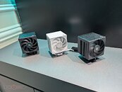 Next up, TCOMAS showed off its latest line of unnamed AS670 and AS570. The AF620 seen last year featured a segment LCD on top, but this one features a clean top-plate, without the display. It comes in all-black, white, and gray variants, and features a conventional tower-type design, with two fans in push-pull configuration. The fans feature webbed impellers to guide all their airflow axially.